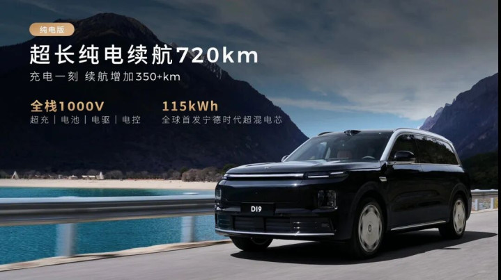 另一个影响大定转化的因素,是这车给得多,增程与纯电,增程的纯电续航就500公里、宁德时代的电池、快充15分钟从30%-80%;纯电版续航720公里、115度的电池、三电机四驱、730匹马力+……